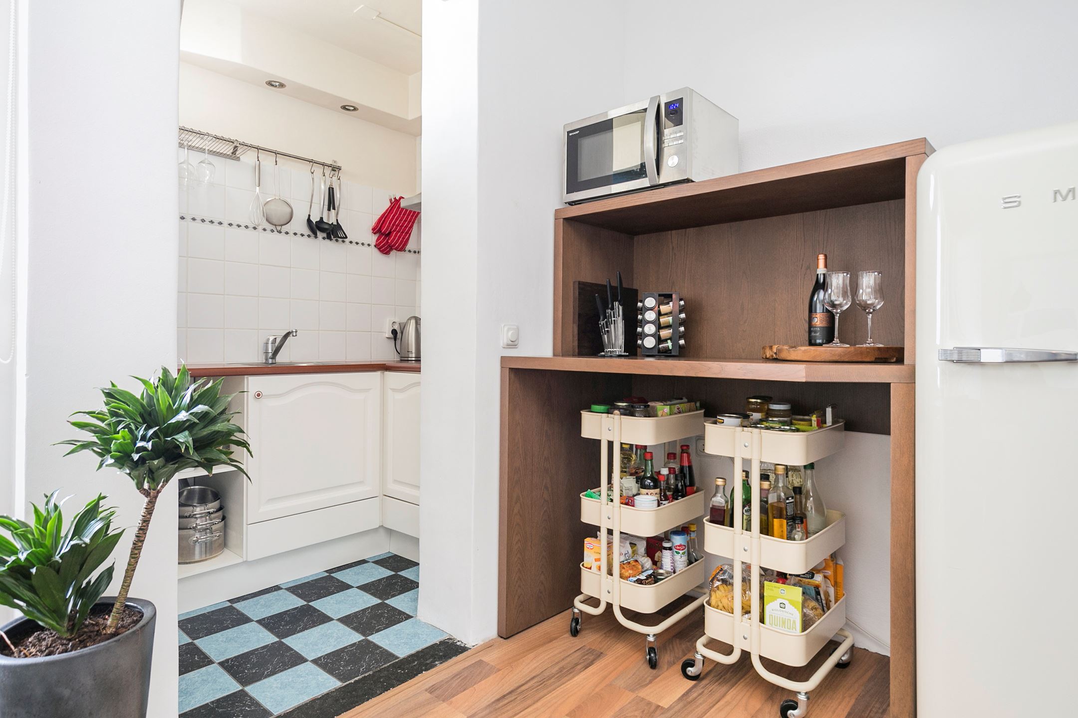 Vergelijking van keukens of keukenruimtes in de kleine appartementen.